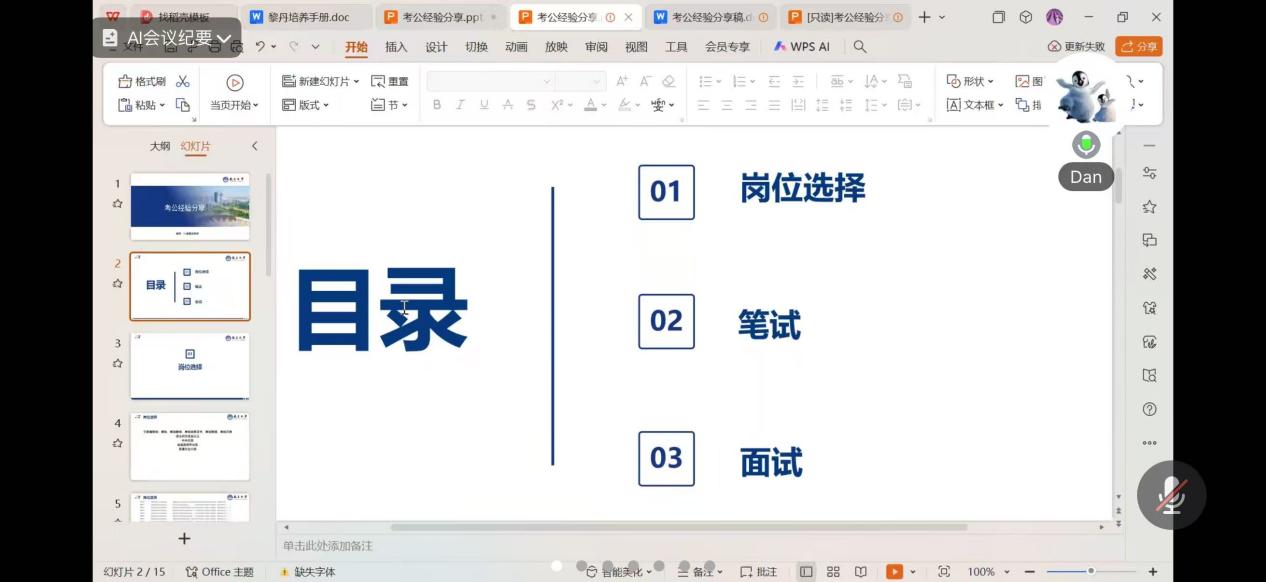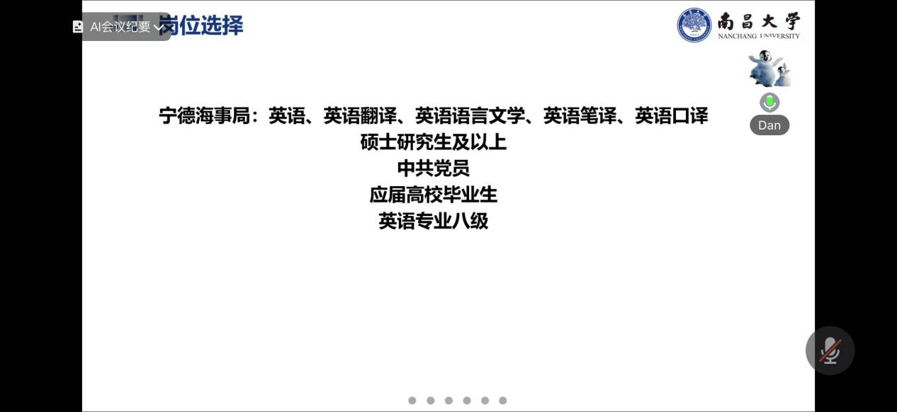 2025年6月4日晚,外国语学院通过线上会议平台成功举办第15届“前湖研讲”研究生学术文化节·“南小研”微讲堂(第201期)。本期活动以“研途公考,明灯引航”为主题,邀请外国语学院2025届英语笔译专业毕业生黎丹担任主讲,吸引了外国语学院多研究生参与。