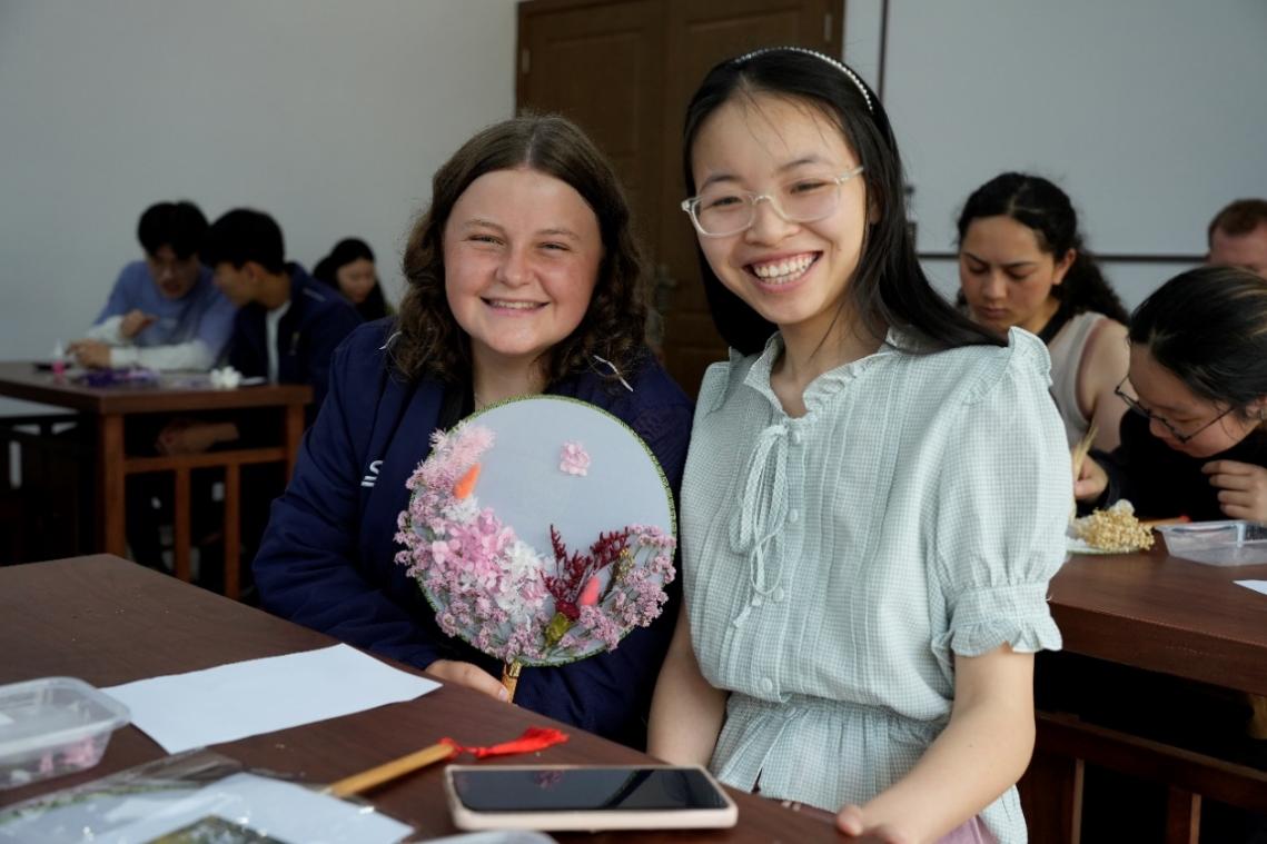 我院与国际教育学院联合举办“Together Better”中外青年文化沙龙系列活动——感受中国永生花团扇魅力