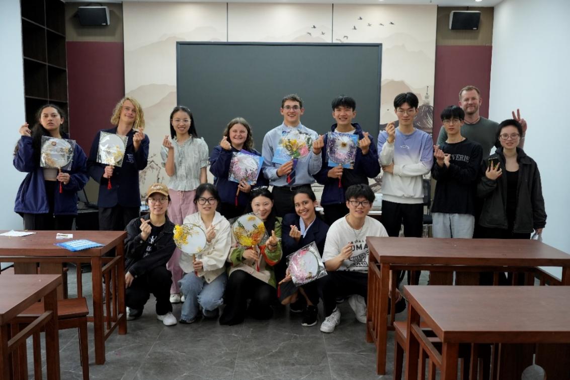 活动最后,中外师生手持永生花团扇合影留念,这些融合了东西方艺术元素的精美作品,将成为这段难忘文化交流的永恒见证。至此,本次艺术沙龙圆满落幕。
