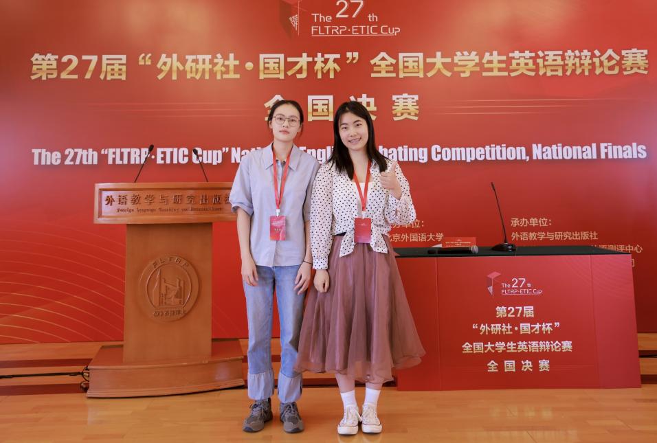 本届国赛循环赛规模宏大,共设置八轮高强度、高难度的英国议会制辩论赛。葛芷晶、廖珈禾凭借稳定发挥,在多轮激烈角逐后,以总积分排名第24位的优异成绩成功晋级。随后,他们代表南昌大学于6月7日 - 9日奔赴北京外国语大学,参加第27届“外研社•国才杯”全国大学生英语辩论赛全国32强总决赛。在线下淘汰赛中,二人继续突破自我,闯入全国前十六强,刷新了学院在此赛事中的最佳战绩。