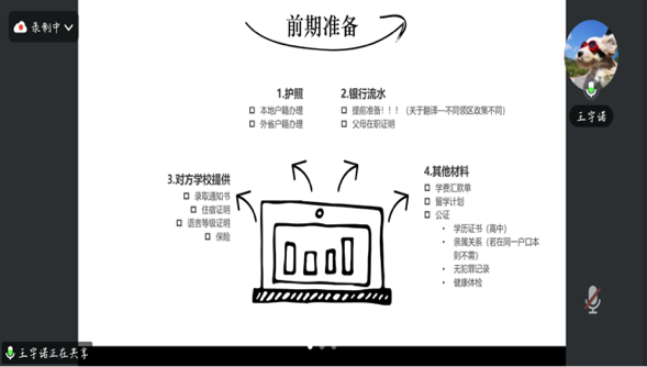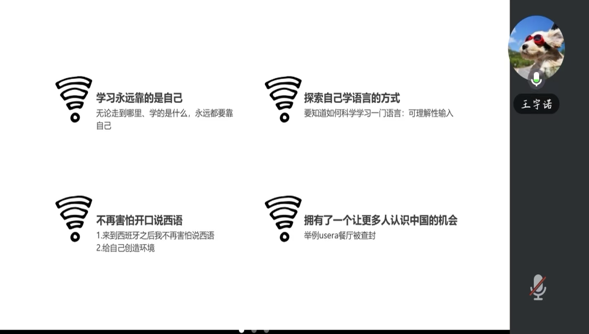 221班的王宇诺同学带来了她在西班牙的留学故事。目前王同学在卡斯蒂利亚·拉曼查大学学习,她介绍了项目的基本情况签证准备事项,分享了留学生活的点滴,为有意赴西留学的同学提供了清晰的指引。