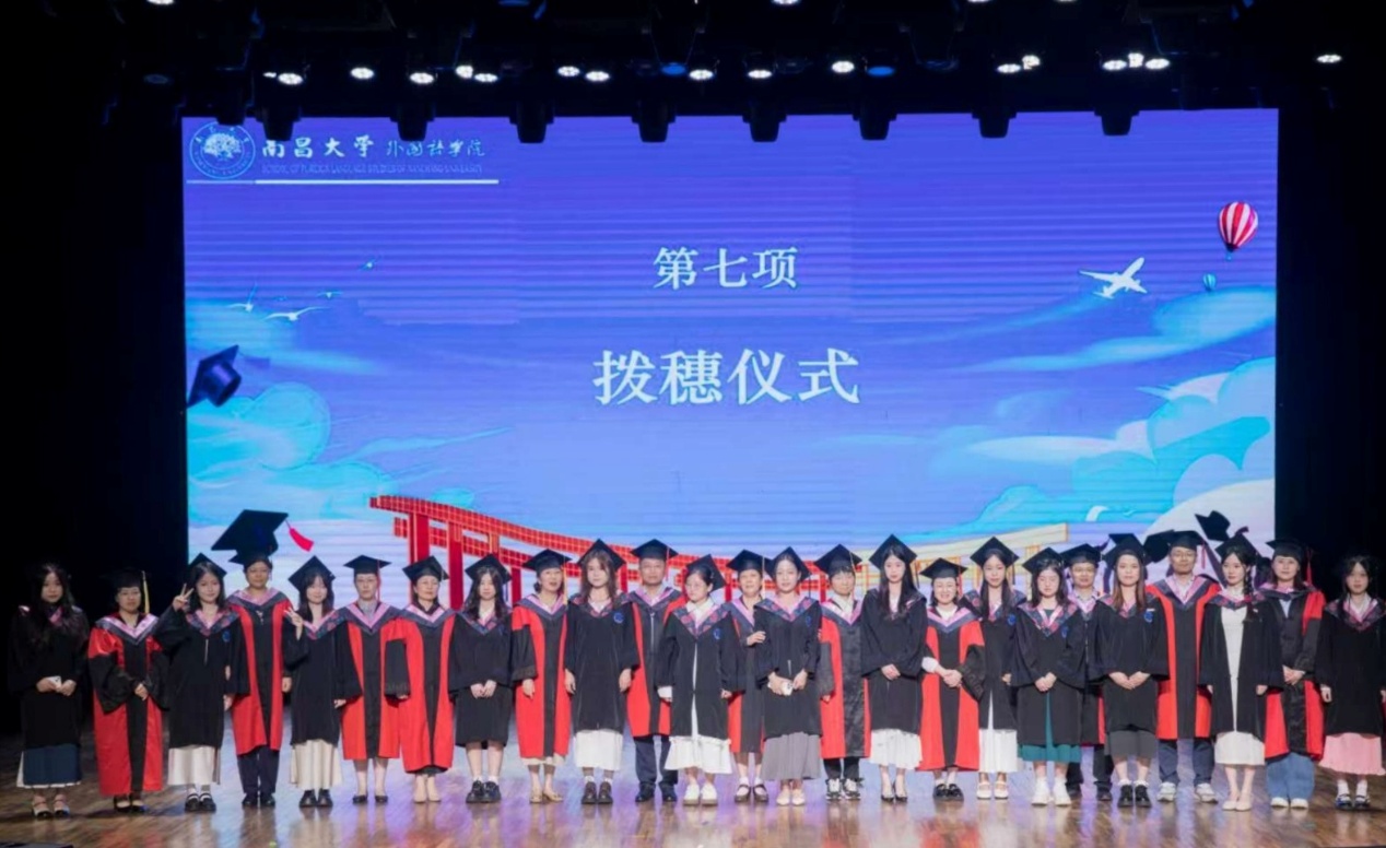 最后,外国语学院导师团为全体毕业生逐一拨穗正冠,并合影留念。